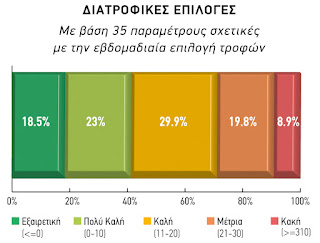 Σχετικά με τις διατροφικές επιλογές το 41,5% των ερωτηθέντων χρήζει παρέμβασης για διόρθωση των επιλογών του ενώ το 28,7% κάνει σωστές διατροφικές επιλογές